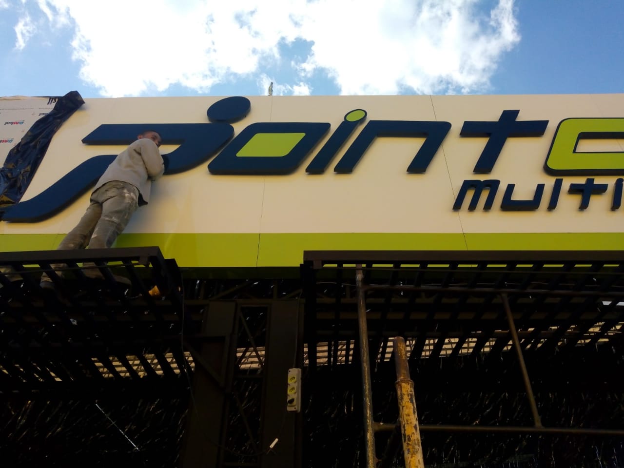 Nós investimos em impressoras de grandes formatos e equipamentos de corte e solda de aço que nos permitem produzir totens e painéis com excelentes resultados.